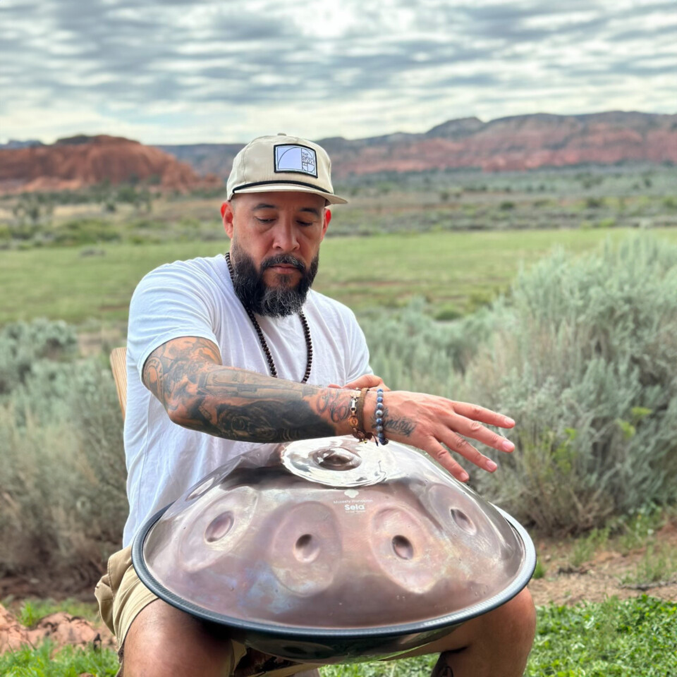 Michael Canales entdeckte seine Leidenschaft für das Handpan während seiner transformierenden Reise des persönlichen Wachstums. Während er Events für The Energy Stack kuratierte – eine Erlebnisreihe mit verschiedenen Modalitäten wie Hapè-Zeremonien, Atemarbeit und Kältetherapie – wurde er mit den ätherischen Klängen des Instruments bekannt gemacht. Fasziniert von seinem meditativen Klang wurde das Handpan schnell zu einem zentralen Element sowohl in seiner persönlichen Praxis als auch in seinen Retreats. Heute integriert Michael die beruhigenden Melodien des Handpans in The Energy Stack und seine halbjährlichen Männer-Retreats, um bei anderen Verbindung, Achtsamkeit und inneren Frieden zu fördern.