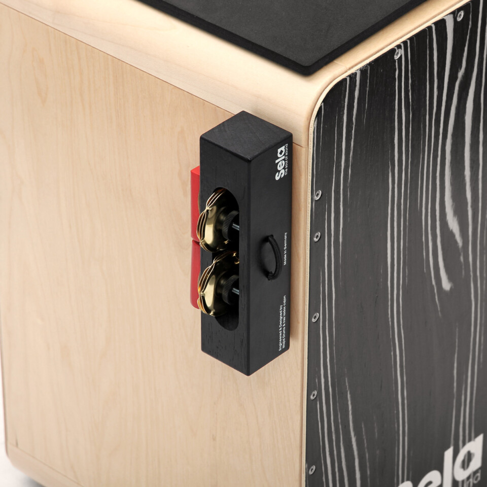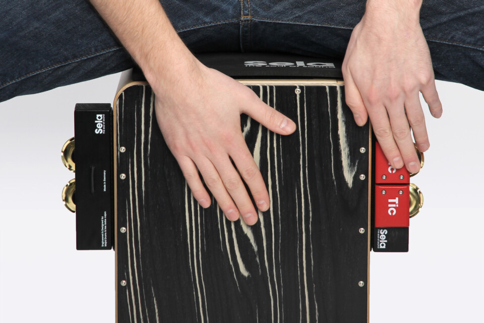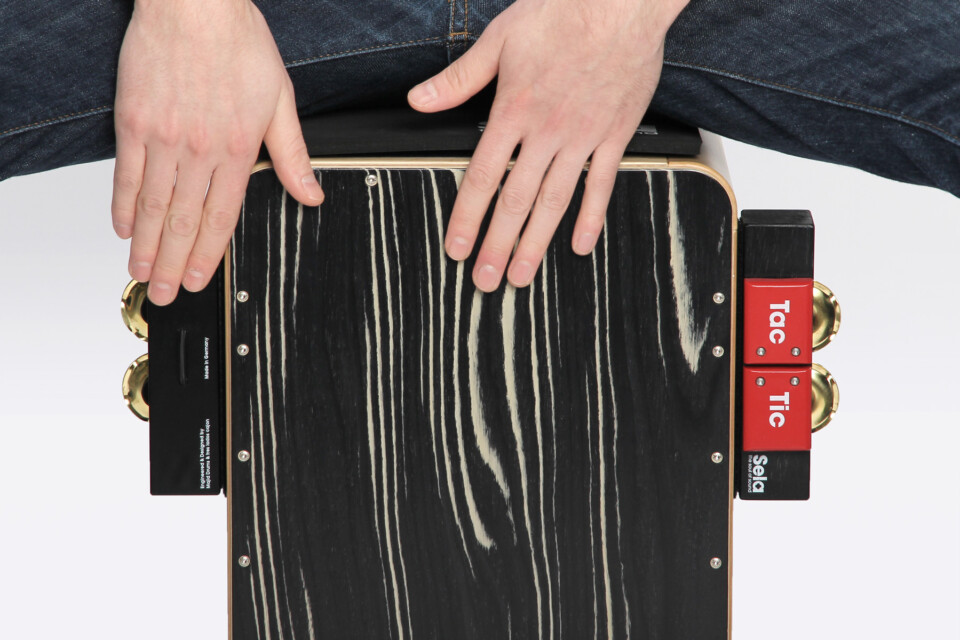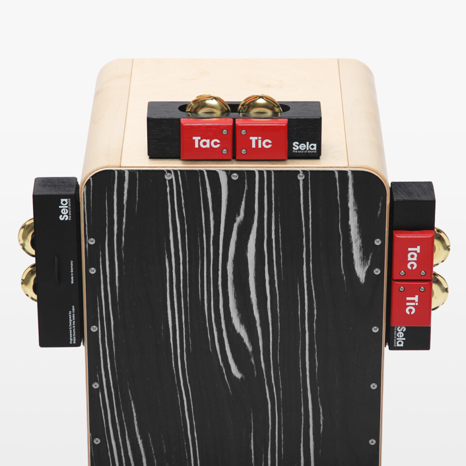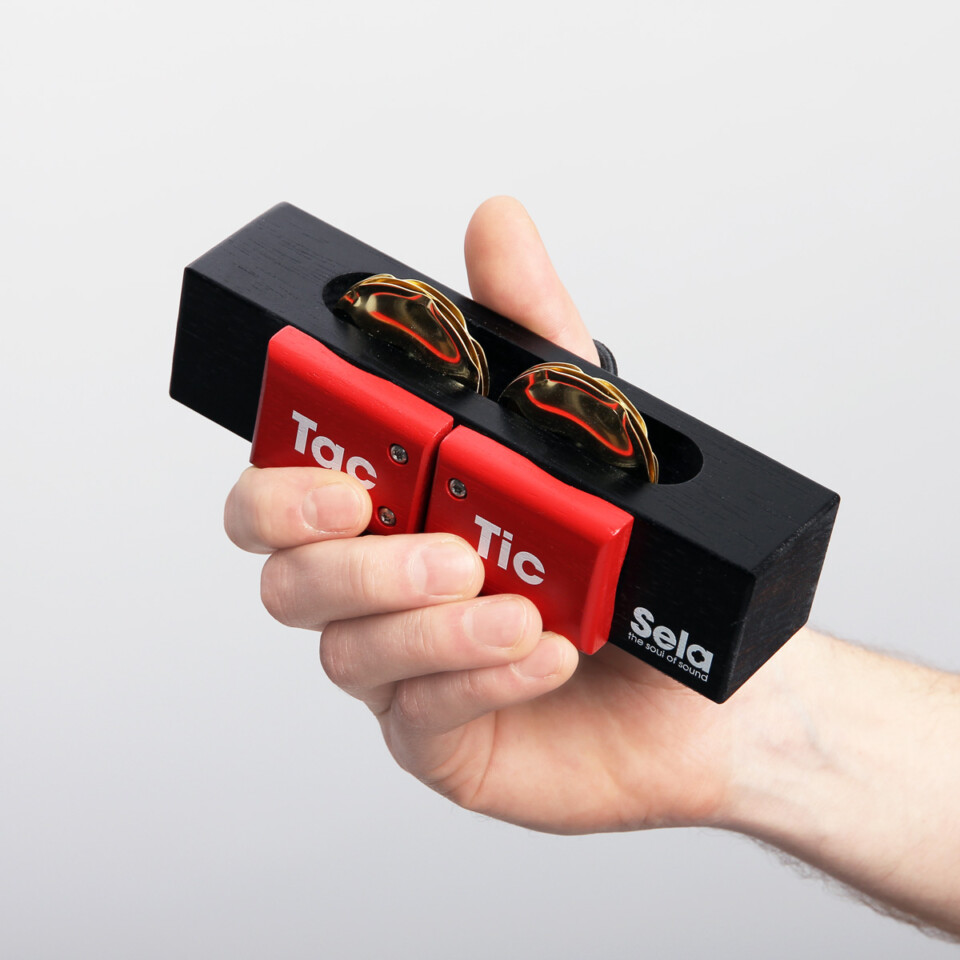 Das Sela Tac Tic ist ein “3in1” Multi-Percussion-Instrument, das eine völlig neuartige Kombination aus Kastagnetten, Schellen und Shaker ist. Es bietet dir damit vielfältige Soundmöglichkeiten. Du kannst es als Add-On für dein Cajon oder ein anderes Percussion-Instrument benutzen sowie als eigenständiges Instrument in der Hand spielen.