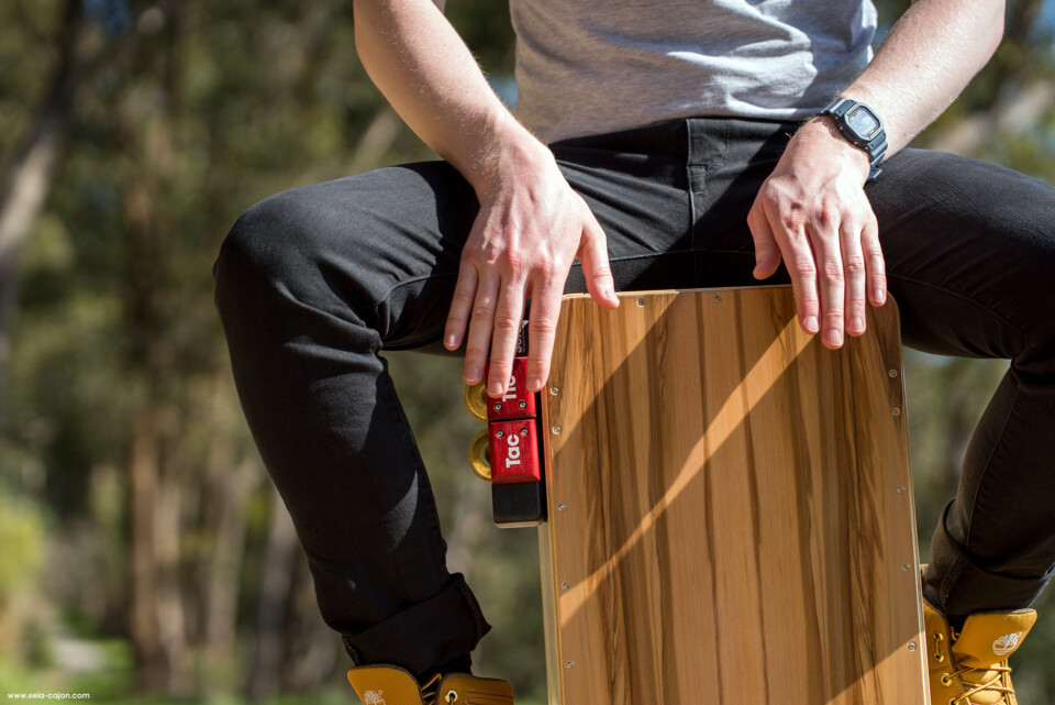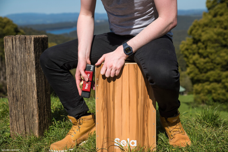 Oben, rechts oder links: Du kannst das Sela Tac Tic mithilfe des Klettbands an jeder Stelle deines Cajons befestigen. Deine Spielweise und dein Geschmack entscheiden wo. Wenn du das Sela Tac Tic z.B. oben auf der Sitzfläche platzierst, ermöglicht es dir, gleichzeitig das Cajon mit den Handflächen und die Kastagnetten mit den Daumen zu spielen.