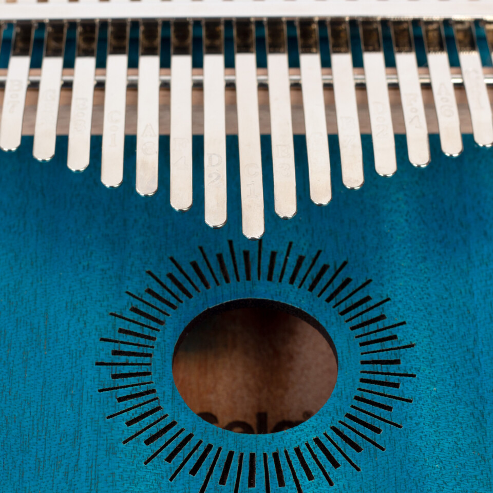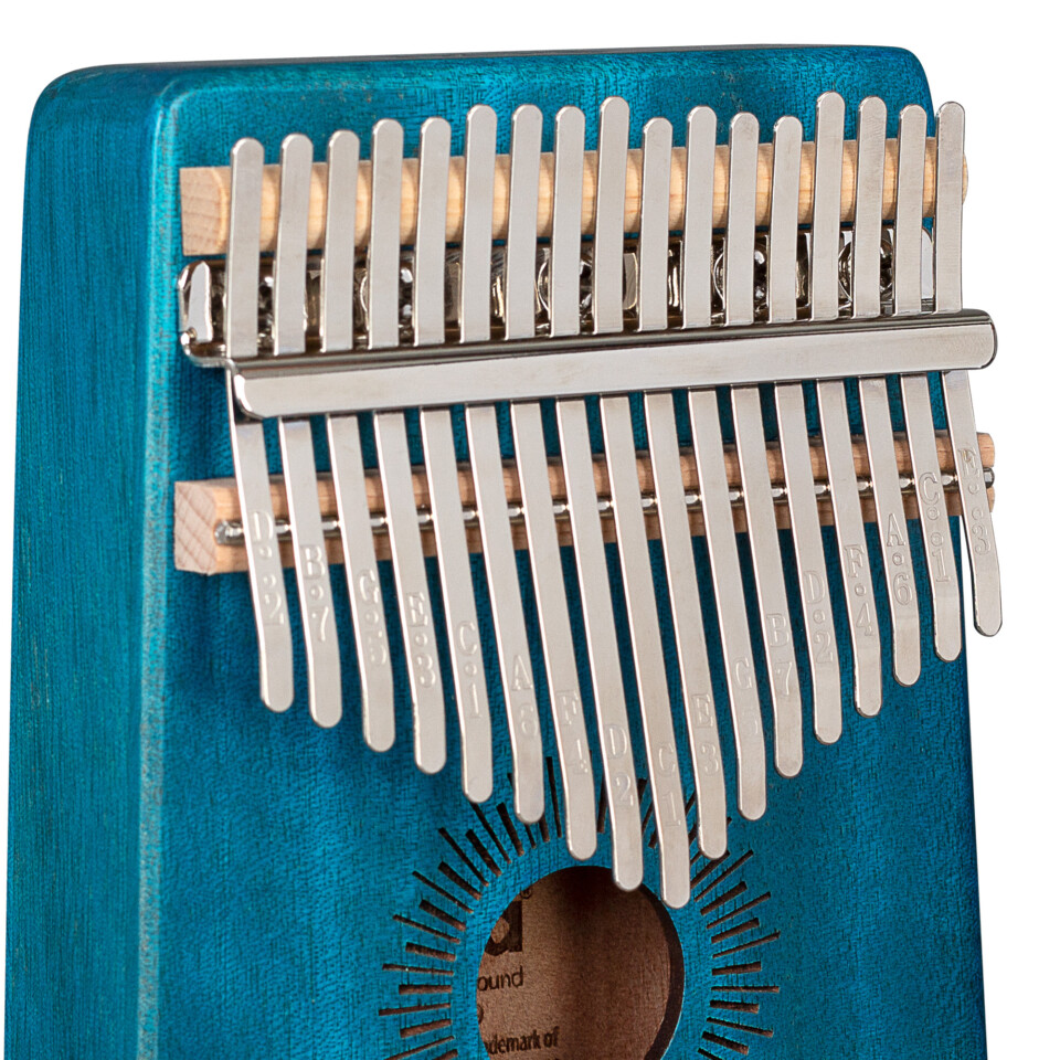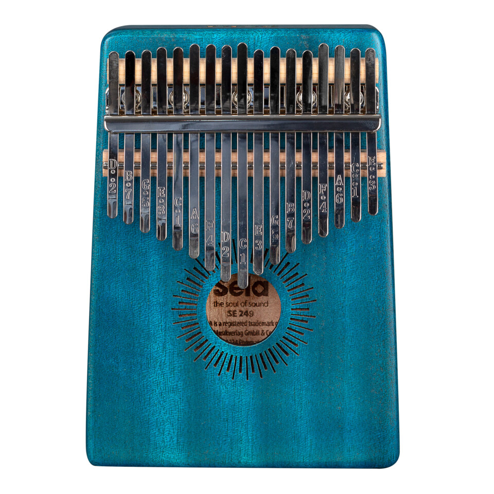 Die Sela Kalimba 17 in Blau ist aus hochwertigem Mahagoni-Holz gefertigt. Der Korpus verstärkt die tiefen Frequenzen und erzeugt dadurch einen vollen, klaren und warmen Klang mit einer faszinierenden Resonanz. Die hochwertigen Metall-Zungen sind in C-Dur gestimmt und haben einen Tonumfang von c‘ – e“‘ (C4 – E6). Durch die eingestanzten Noten auf den Klangzungen ist die Kalimba sowohl für Anfänger als auch für fortgeschrittene Spieler geeignet.