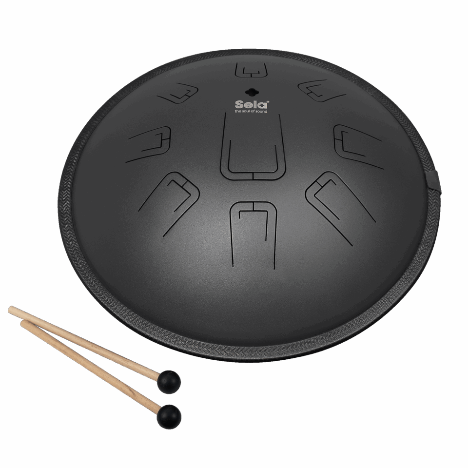 Die Sela Melody Tongue Drum 14“ D Kurd Black ist eine mittelgroße Stahlzungentrommel mit neun Tonfeldern und einem Durchmesser knapp 36 Zentimetern. Mit ihrem warmen, lang anhaltenden und beruhigenden Klang eignet sie sich zur Entspannung im Alltag genauso wie für das ernsthafte Musizieren oder die musikalische Früherziehung von Kindern. Sie klingt nicht nur besonders gut, sondern ist mit ihrer matt-schwarzen Oberfläche auch ein schicker Blickfang – ob Zuhause, im Büro oder im Yoga-Studio.