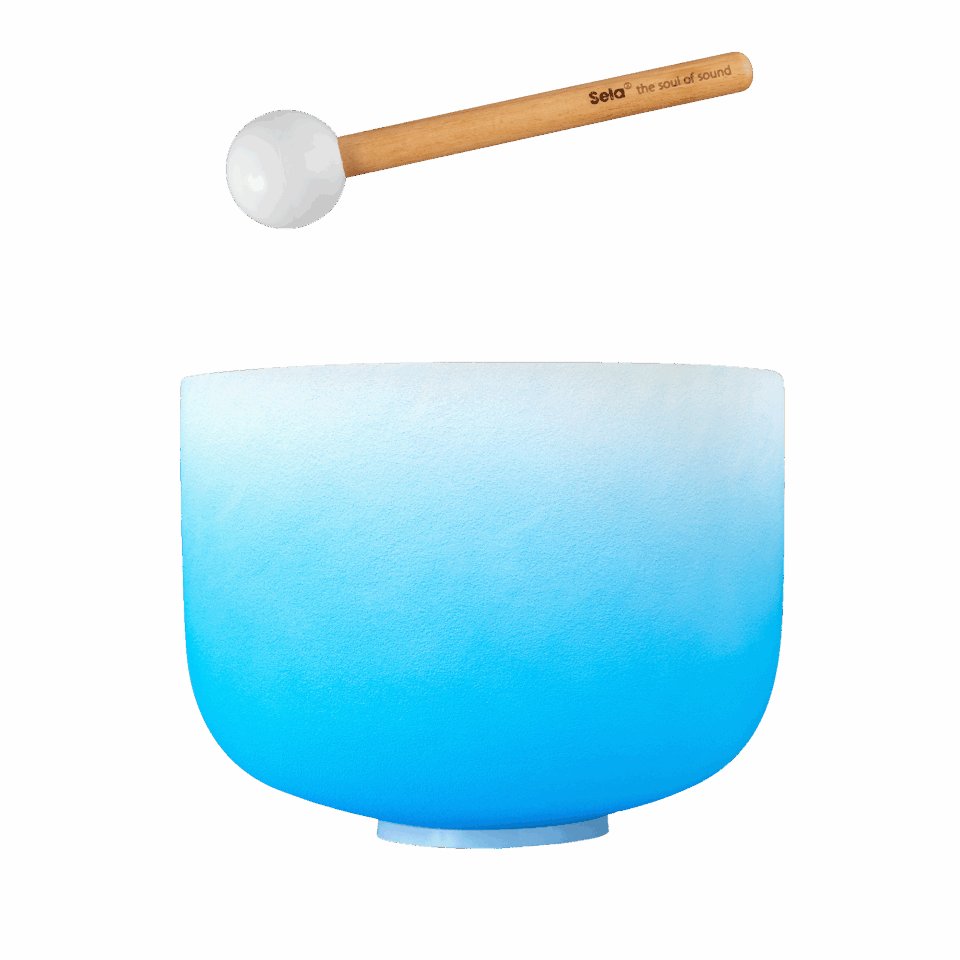 Das blaue 10″-Modell ist auf das Hals-Chakra ausgerichtet und auf die Note G. Bei der 432-Hz-Variante liegt der Kammerton A aber nicht auf der westlichen Standardfrequenz von 440 Hz, sondern bei 432 Hz. Dieser Stimmung wird unter anderem eine besonders entspannende und beruhigende Wirkung nachgesagt. Allerdings harmoniert diese Klangschale dadurch nicht mit herkömmlich gestimmten Instrumenten. Sie sollte entweder einzeln oder zusammen mit anderen 432-Hz-Instrumenten – wie etwa unseren Sela Unity Handpans ¬– gespielt werden