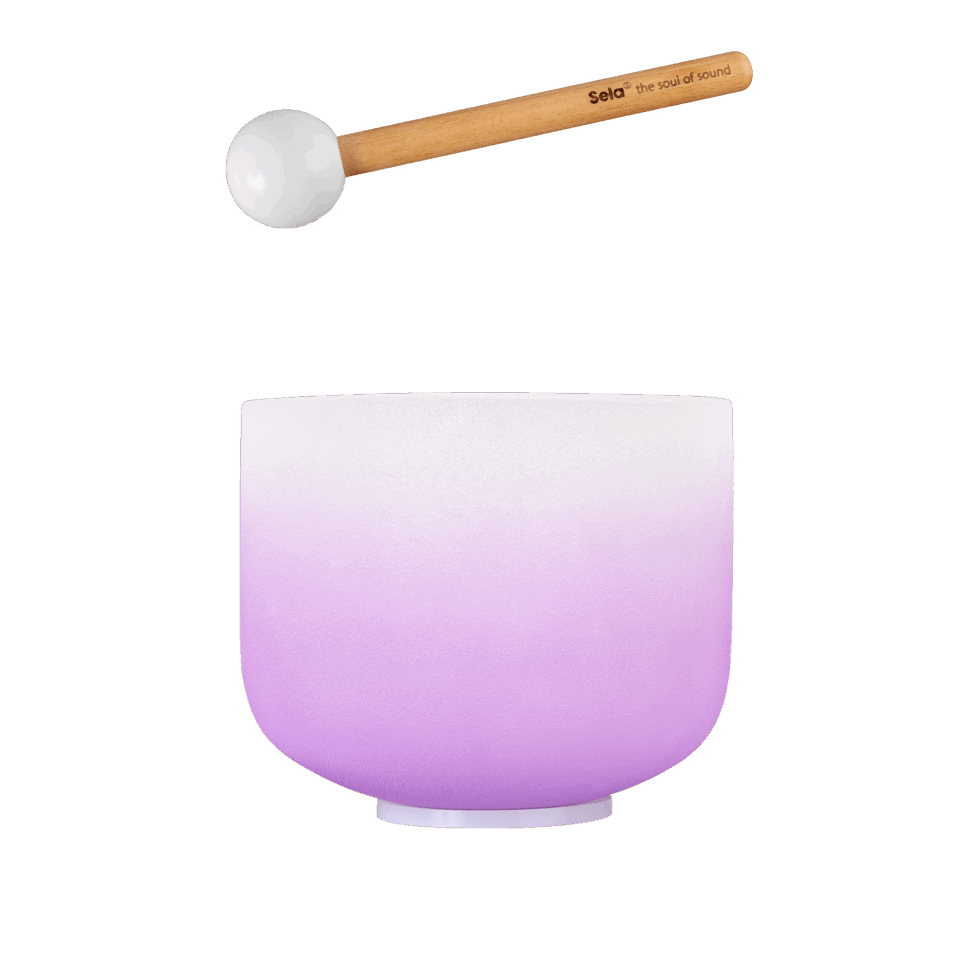Das violette 8“-Modell ist auf das Kronen-Chakra ausgerichtet und auf die Note B gestimmt. Bei der 432-Hz-Variante liegt der Kammerton A aber nicht auf der westlichen Standardfrequenz von 440 Hz, sondern bei 432 Hz. Dieser Stimmung wird unter anderem eine besonders entspannende und beruhigende Wirkung nachgesagt. Allerdings harmoniert diese Klangschale dadurch nicht mit herkömmlich gestimmten Instrumenten. Sie sollte entweder einzeln oder zusammen mit anderen 432-Hz-Instrumenten – wie etwa unseren Sela Unity Handpans – gespielt werden.