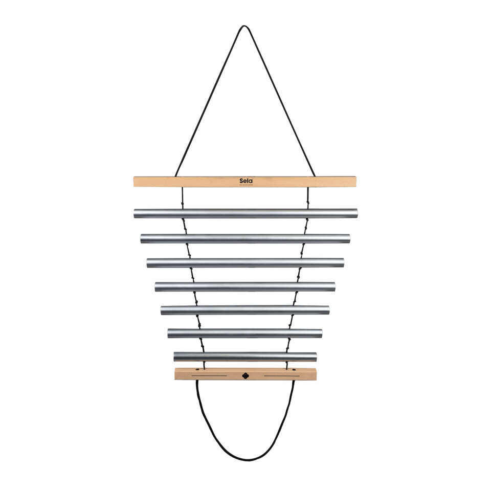 Sela Harmony Chimes erzeugen stimmungsvolle, beruhigende Klänge. Das handgehaltene Instrument besteht aus mehreren Aluminium-Klangröhren, die an reißfesten Nylonschnüren befestigt und von zwei Haltestäben aus Holz eingefasst sind. Gespielt werden die Sela Harmony Chimes mit dem beiliegenden Schlägel. Einmal in Schwingung versetzt, können sie auch sanft geschwungen, gedreht oder vorsichtig herumgewirbelt werden, um den ganzen Raum mit ihrem sanften Klang zu erfüllen.