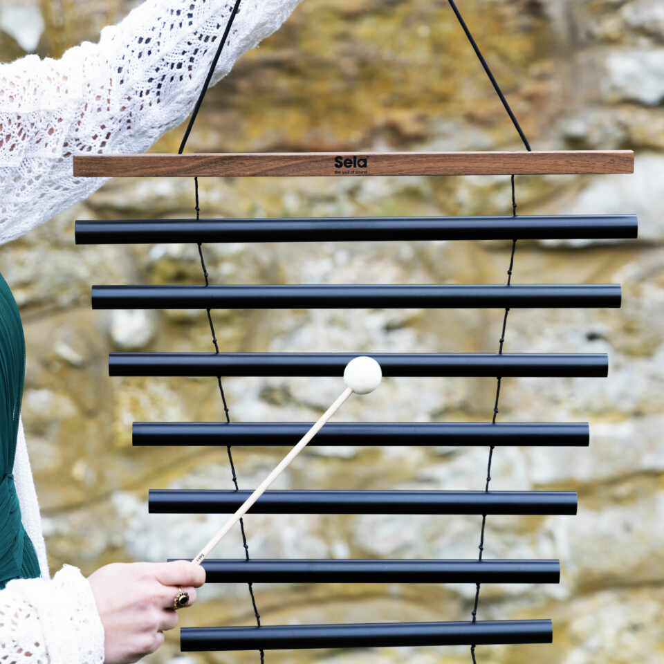 Das Spielen der Sela Harmony Chimes setzt keinerlei musikalische Kenntnisse voraus. Einzeln oder auch nacheinander angeschlagen, bauen die unterschiedlich gestimmten Klangröhren eine überaus entspannende Atmosphäre auf, die sich positiv auf Körper und Geist auswirken kann. Damit eignet sich dieses Instrument hervorragend für die persönliche Entspannung nach einem stressigen Tag sowie für Meditation, Yoga und Klangtherapie. Natürlich lassen sich die Sela Harmony Chimes auch als ganz besonderer Effekt in einen musikalischen Kontext einbinden. Und wenn sie nicht gespielt werden, werten sie jeden Raum als schickes Deko-Element stilvoll auf.