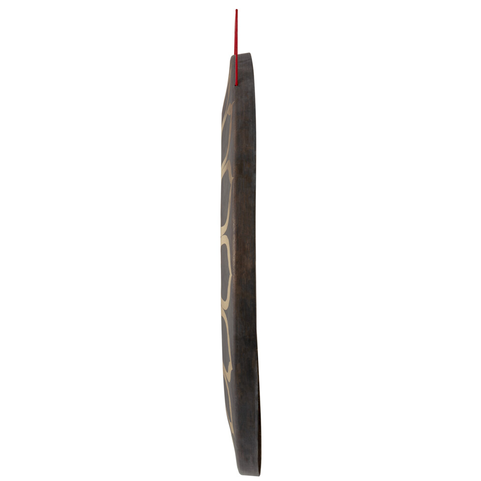 Der Sela Chau Gong Lotus hat eine traditionelle Form mit nach hinten gebogener Felge. Seine Oberfläche ist am äußeren Rand, in der Mitte und im Bereich dazwischen jeweils unterschiedlich stark behandelt und abgedreht, was allein schon für eine ganz besondere, charakteristische Optik mit teilweise schimmerndem, matt-goldenem Finish sorgt. Besonders sticht der Sela Chau Gong Lotus aber durch sein elegantes Lotus-Motiv hervor, welches in den äußeren Bereich eingearbeitet ist. Die Lotusblume wird auch als „Blume des Lebens“ bezeichnet und hat viele spirituelle Bedeutungen – unter anderem steht sie für Reinheit des Herzens, Schöpferkraft, Weisheit und Erleuchtung.