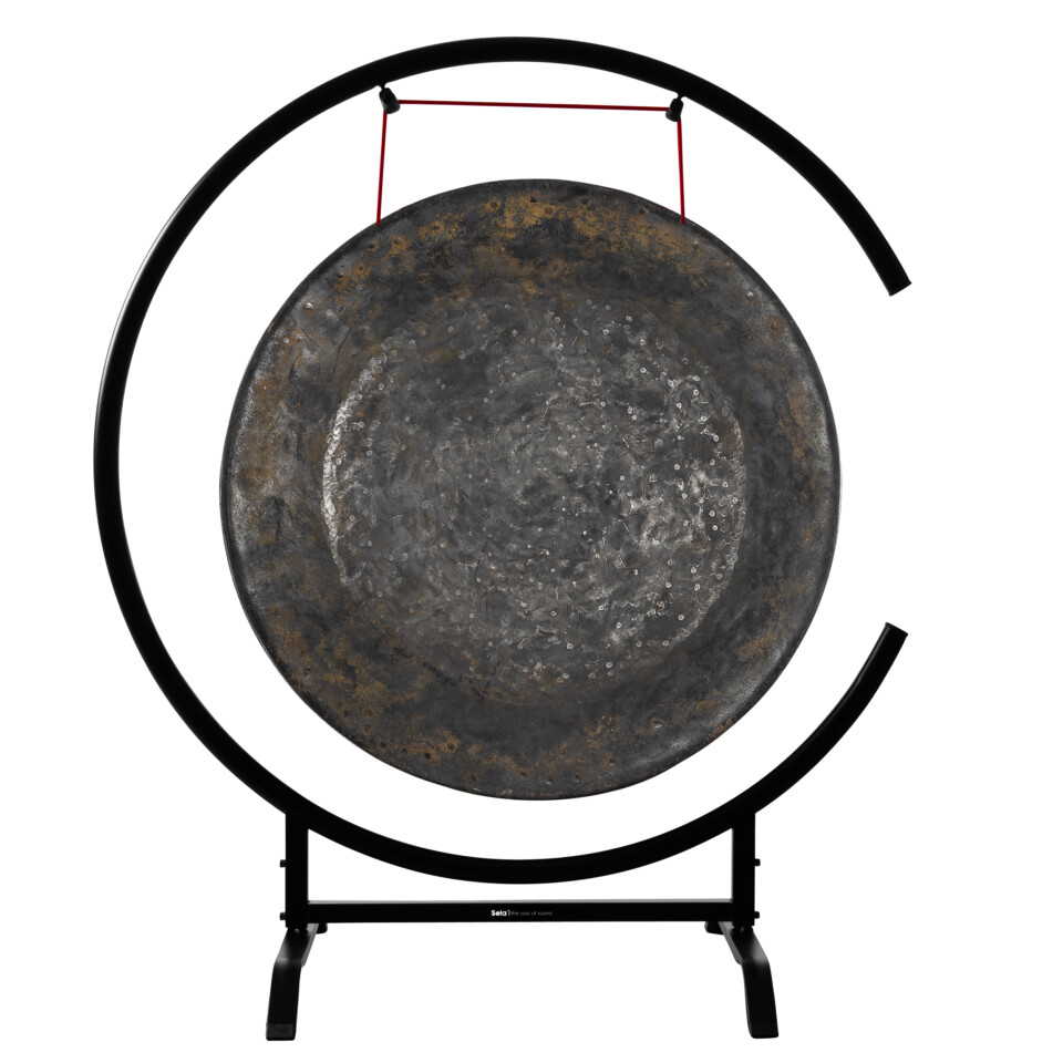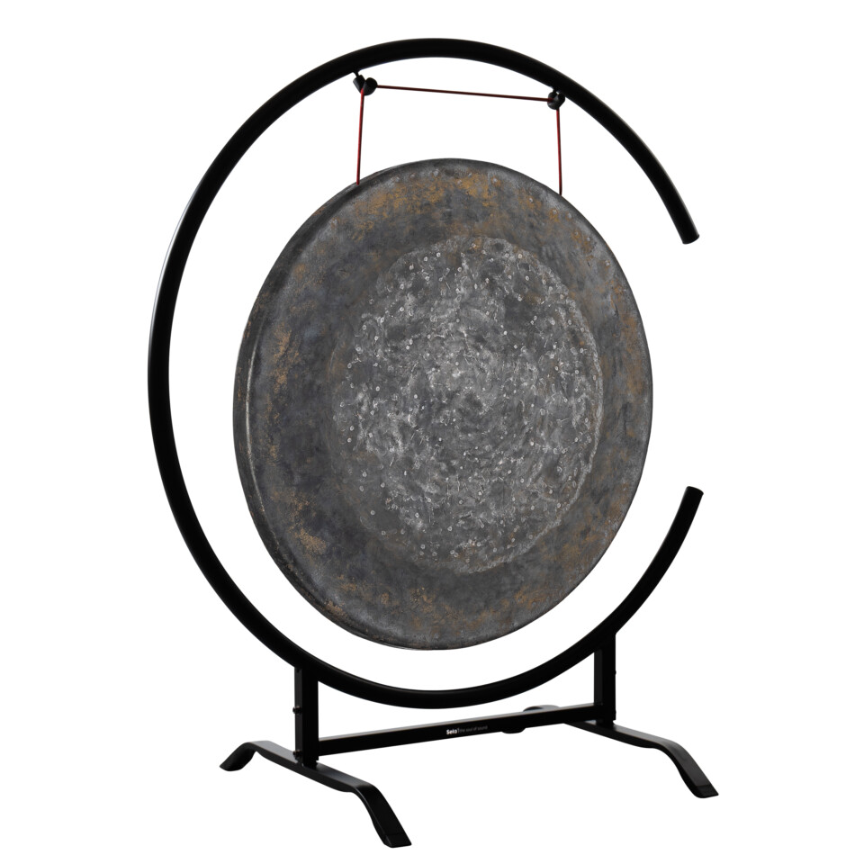 Stilvoll und elegant setzt der runde Rahmen den Gong in Szene und bietet ihm dabei stabilen Halt. Der Ständer aus schwarzem pulverbeschichtetem Stahl erlaubt dem Gong frei zu schwingen und sorgt so für ein umwerfendes Klangerlebnis. Durch seine kompakte Größe können Gongs mit diesem Ständer sowohl auf dem Tisch als auch auf dem Boden gespielt werden. Die Haken zum Einhängen des Gongs sind nochmal extra mit einem weichen Schaumstoff gepolstert und an den Füßen befinden sich schonende Kunststoffeinsätze, die verhindern, dass der Gongständer Tisch oder Boden beschädigt.