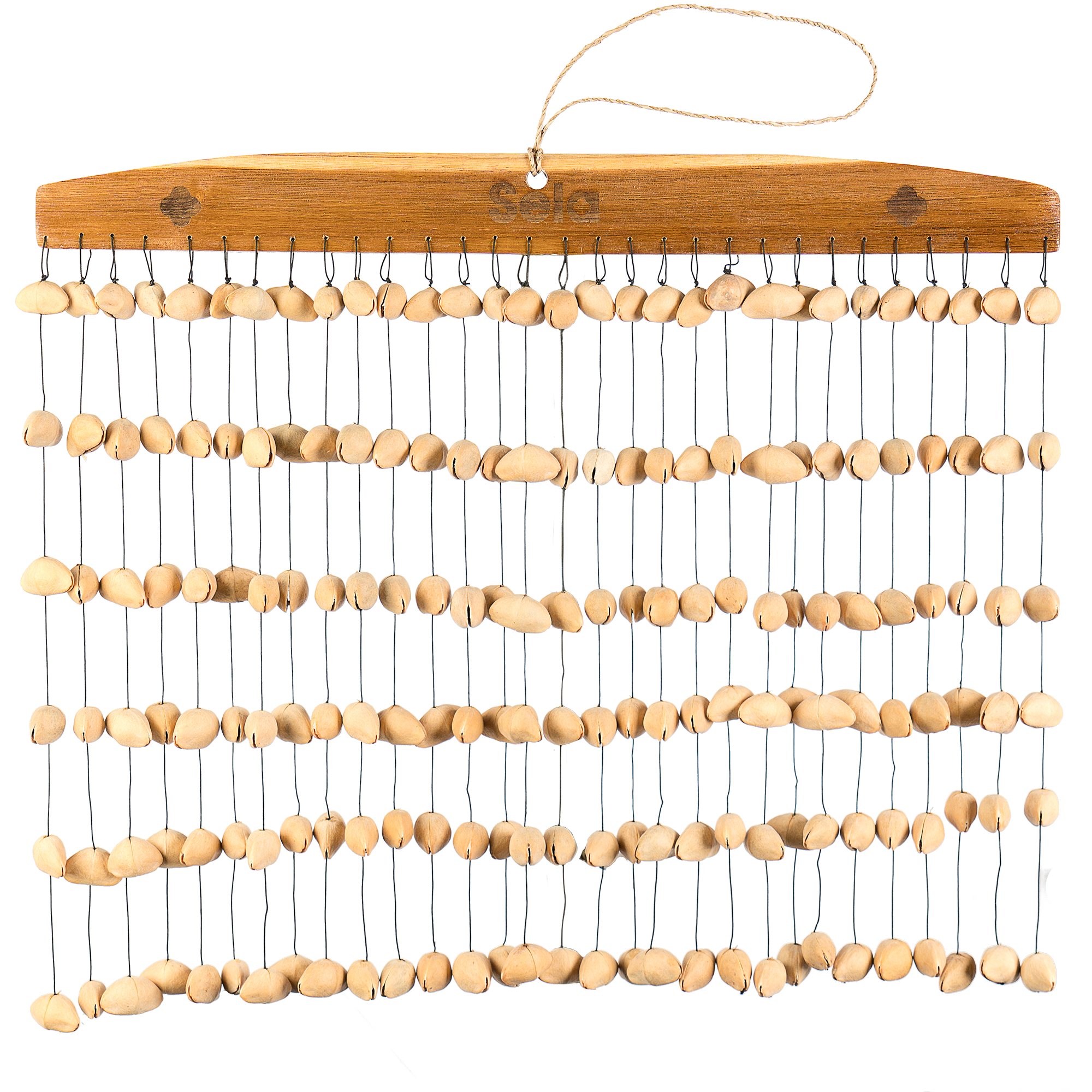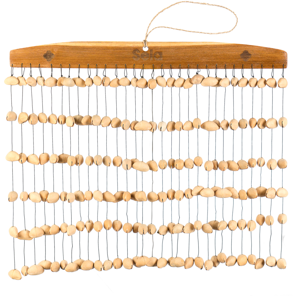 Die zusätzliche Masse der Samen verstärkt die Wärme des Tons und verleiht dem Sela Seed Chime Kenari XL einen vollen, runden Klang mit einer erdigen, organischen Präsenz.