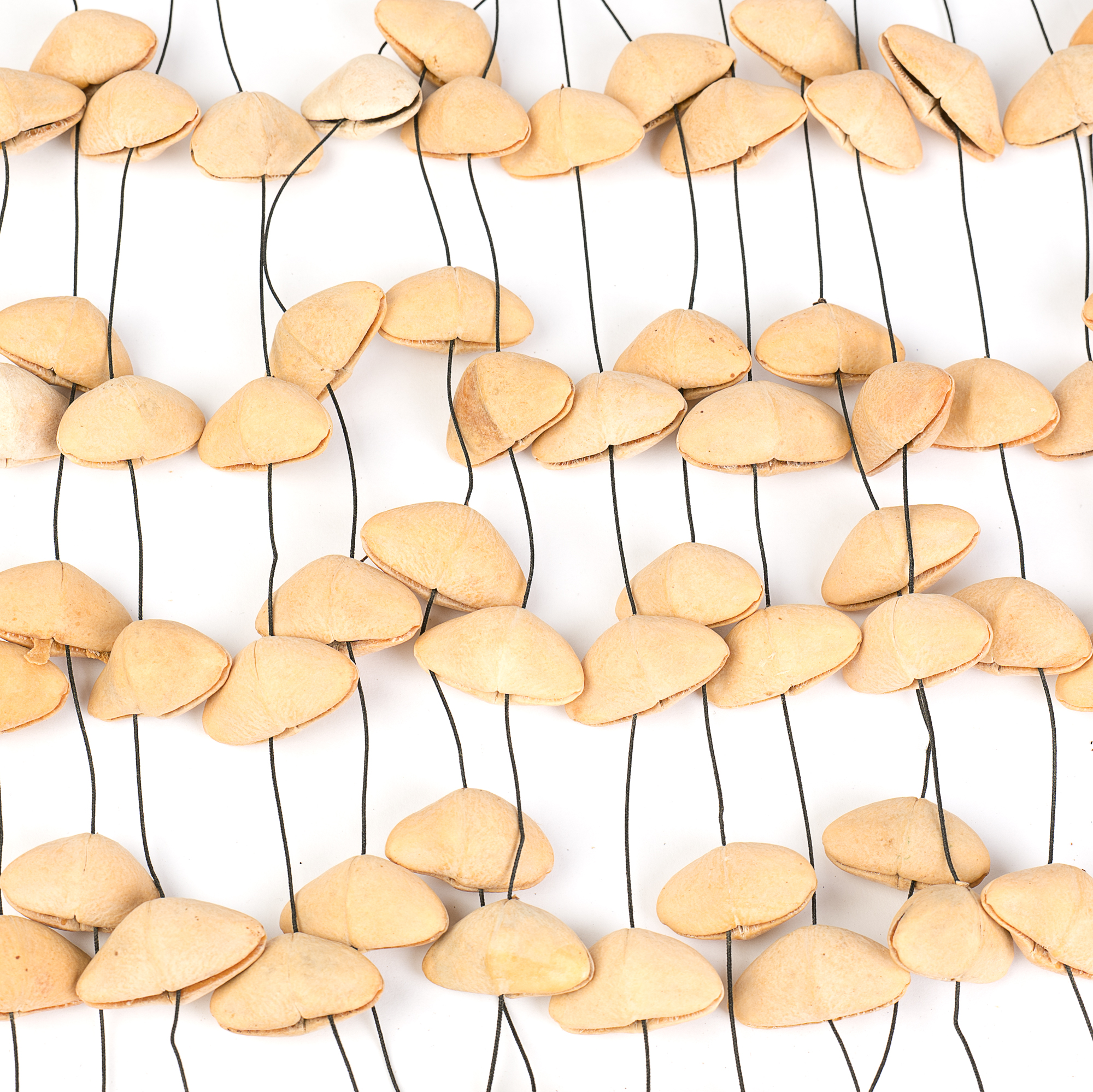 Gefertigt aus größeren Kenari-Samenschalen mit einer matten und leicht porösen Oberfläche, erzeugt dieses Chime einen tiefen, resonanten Klang.