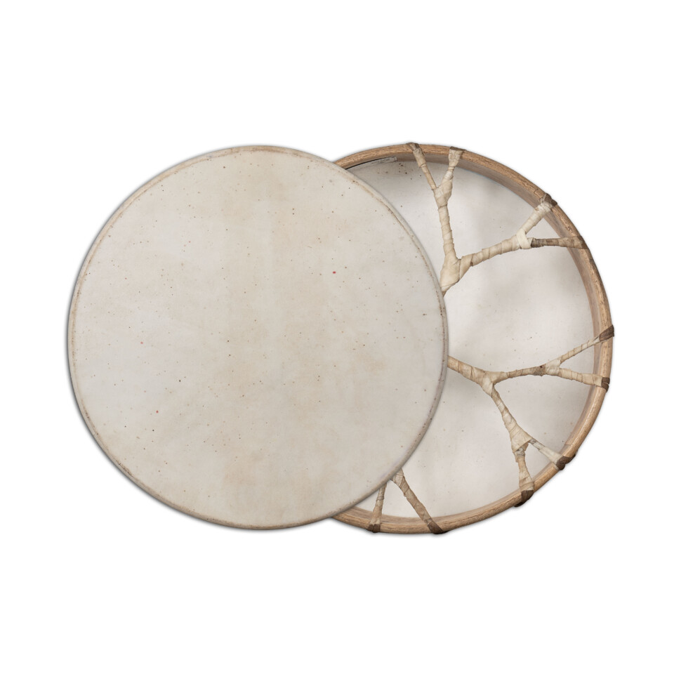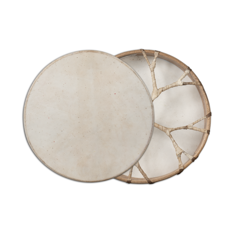 Diese Trommeln vereinen traditionelle Handwerkskunst mit hochwertigen Naturmaterialien und bieten für jede Größe und Variante einen charaktervollen Klang. Erhältlich in weiteren Größen: 14″, 18″, 20″ und 22″ – mit zunehmendem Durchmesser steigen Klangfülle und Resonanztiefe.