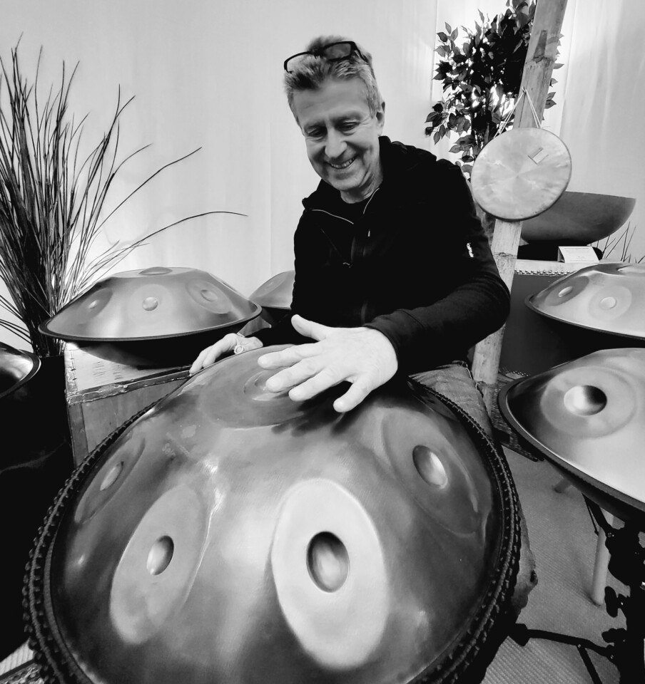 Mathias Reuter ist Percussionist und Geschäftsführer von percussion+m. Als zertifizierter Drum Circle Facilitator und Mentor bringt er umfangreiche Erfahrung in der musikalischen Bildung mit, einschließlich des Unterrichts von Handpan. Nach seinem Studium der Sozialwissenschaften leitet er seit 2001 Drum Circles und bietet Workshops an, um die Kunst des Handpan-Spiels zu vermitteln. Zudem ist er Mitautor des Buches „Drum Circle – der Groove für alle“ und bietet Weiterbildungen für Musikpädagogen an.