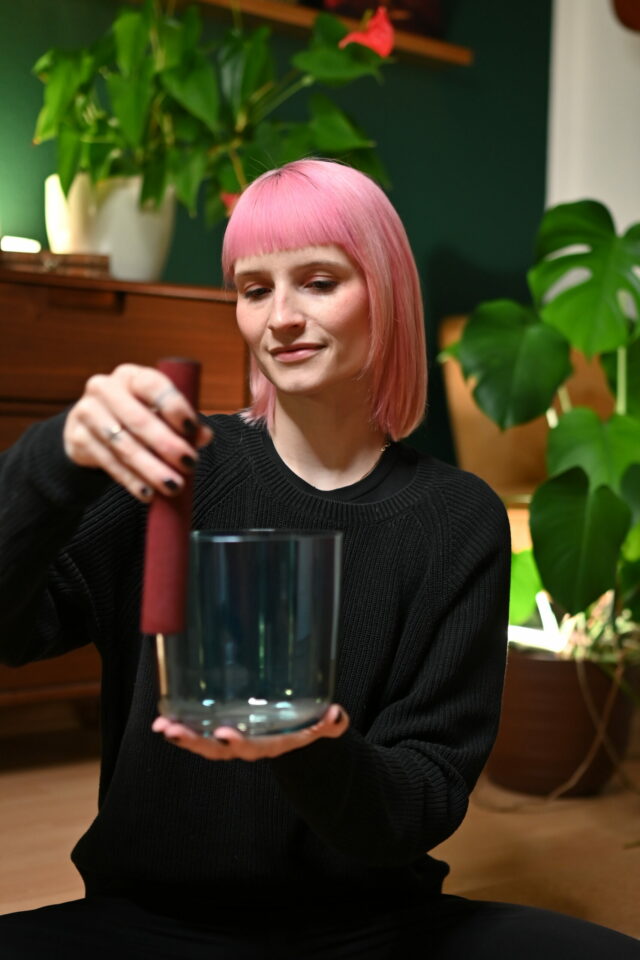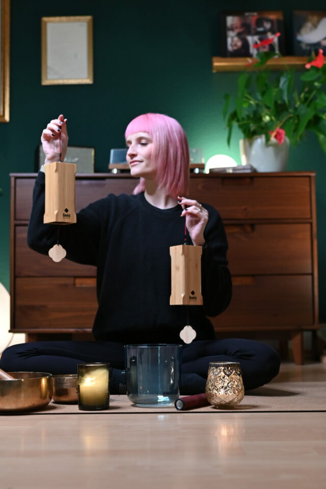Dazu nutzt sie nicht nur tibetanische Klangschalen und Crystal Singing Bowls, sondern liebt es mit Klängen und Instrumenten zu experimentieren und greift auch gerne einmal zu klassischen Instrumenten, wie der Gitarre oder Ukulele.