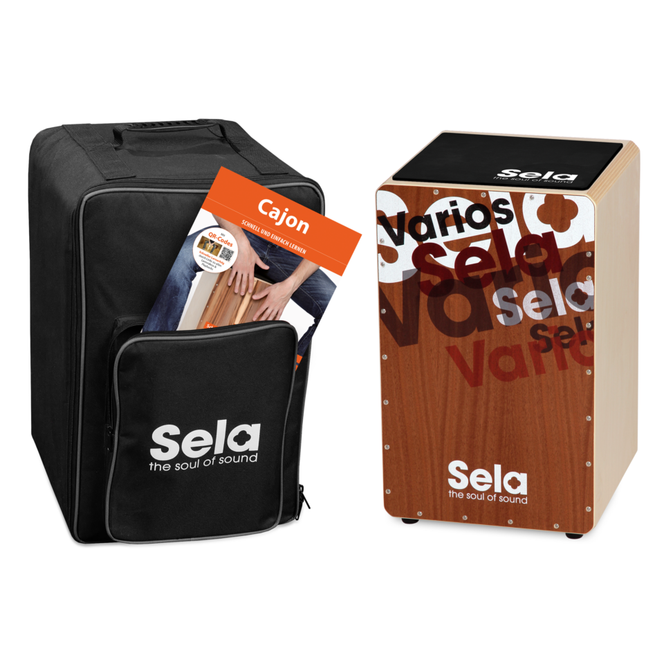 Everything for an ideal start into the world of the Cajon! The Sela Varios Bundle contains everything for an ideal start into the world of the Cajon. The set includes not only a Sela Varios, but also a Cajon backpack, a black seat cover and a Cajon school with learning videos and playbacks via QR Code.