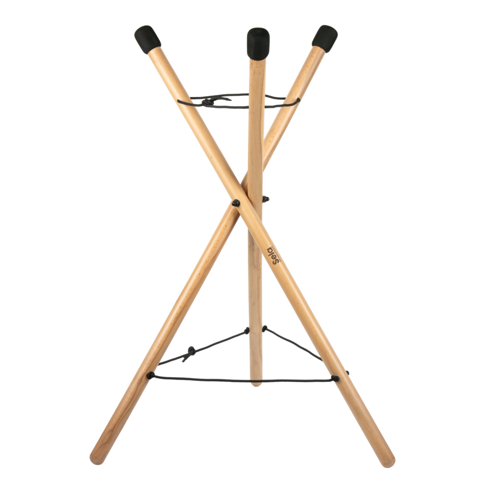 The Sela Handpan Stand is a light, foldable performance stand, which was specially developed for handpans and percussion instruments. The height of the handpan stand is 87 cm. It is therefore ideal for comfortable playing while standing. At the same time, the stand increases freedom of movement when playing. With the attached cords it can be easily and variably adjusted in height.