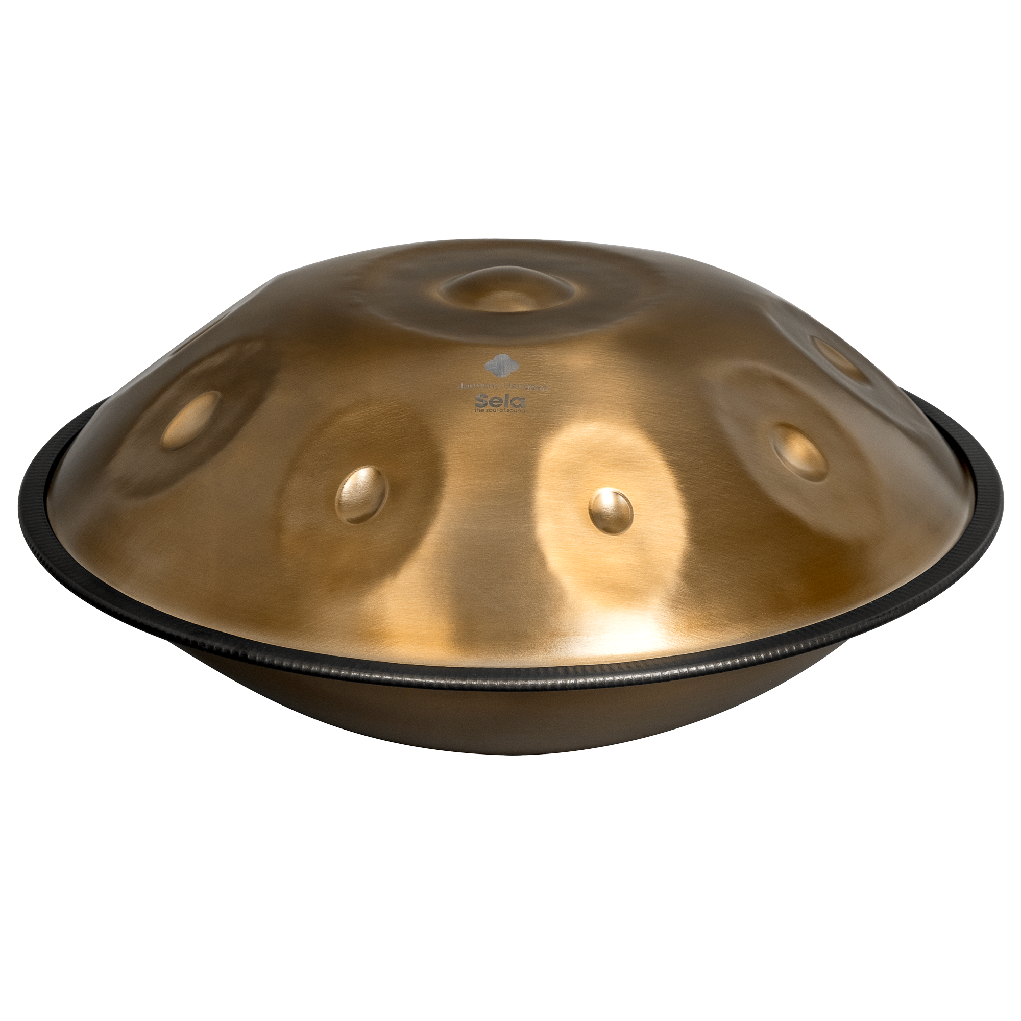 Our Journey Handpans are more compact and travel-friendly versions of our high-quality Harmony Handpans. They are also made from the highest quality stainless steel and are completely handmade and intricately tuned by some of the best handpan makers in the world. Stainless steel handpans have a much longer sustain than nitrided handpans and are therefore particularly suitable for slow, relaxing and meditative playing. At the same time, they are very easy to clean. This Sela Journey Stainless Steel handpans features a matt golden finish, which gives it a noble, high-quality look.