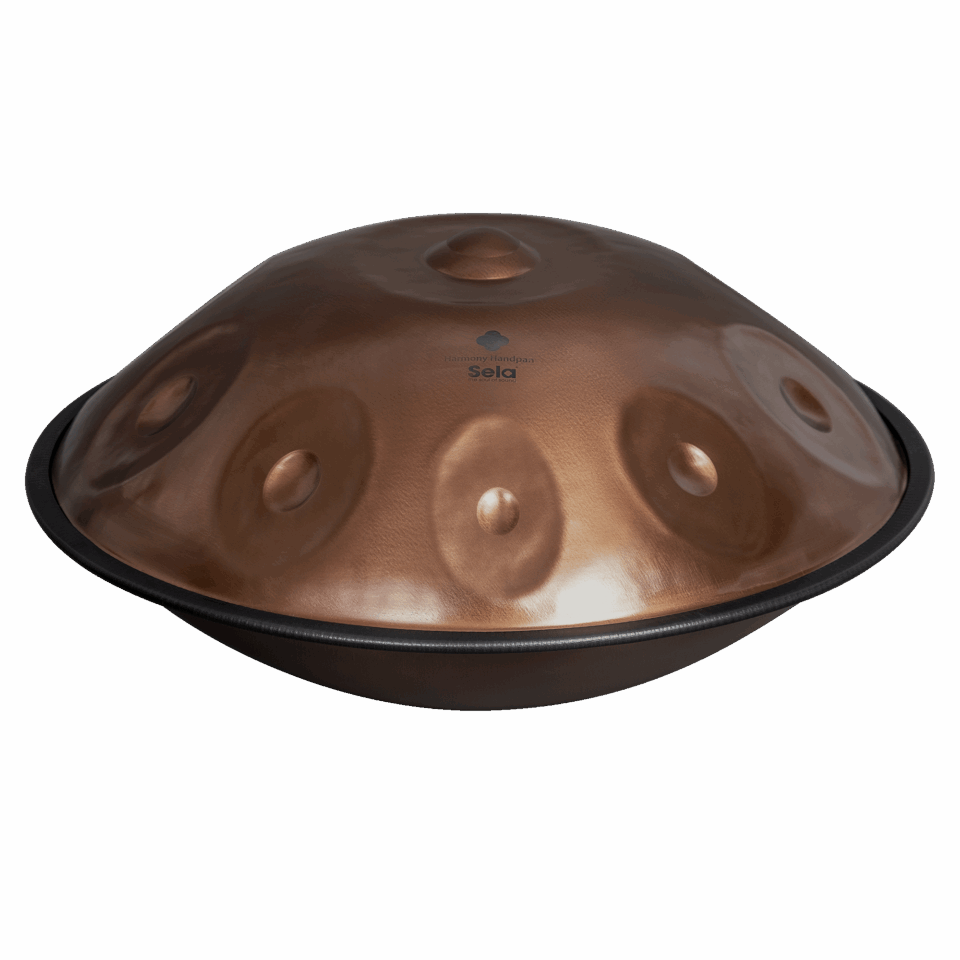 Sela Harmony Ember Steel handpans combine the popular original Ember Steel with the familiar shape of Sela Harmony handpans. They are handmade and consist of a special, very sturdy stainless steel. Their release time lies between nitrided steel handpans and stainless steel models. This particularly balanced sustain and the warm, controlled sound make Ember Steel handpans real all-rounders that can be played slowly and meditatively as well as fast and percussively. They therefore offer the best of both worlds and are also comparatively easy to care for, as the steel alloy is well protected against external influences such as hand perspiration and dirt. During production, our Ember Steel models are given a beautiful brownish finish.