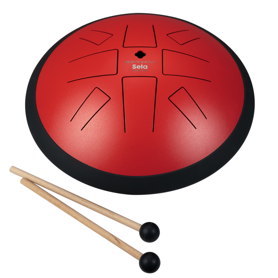 The Melody Tongue Drum 10″ C Pygmy Red is a handy steel tongue drum with a diameter of about 25 centimeters. With its warm and soothing sound, it is suitable for relaxation in everyday life as well as for the early musical education of children. The eight tone fields of the Sela Melody Tongue Drum 10″ C Pygmy Red lie on the Pygmy scale. This creates harmonic sounds that enchant listeners when playing this tongue drum.