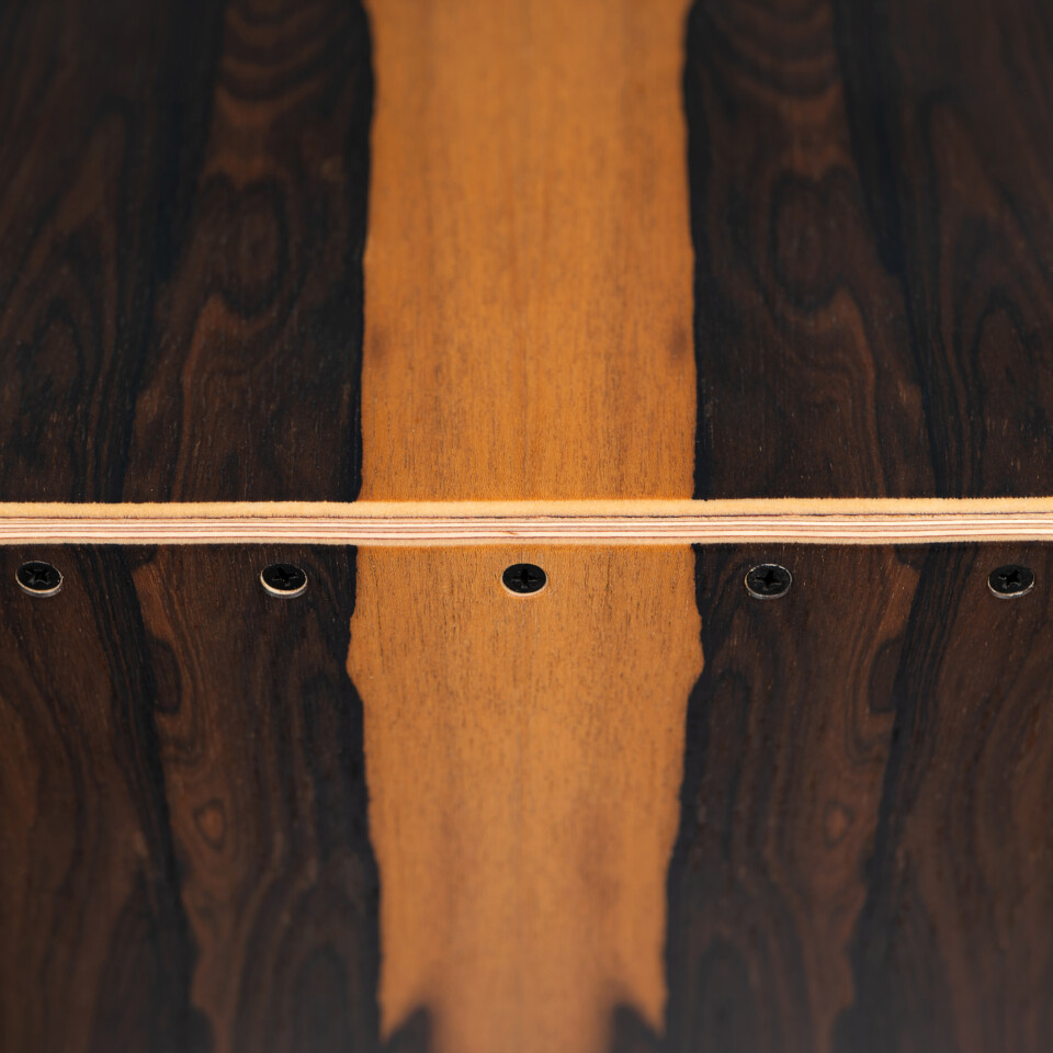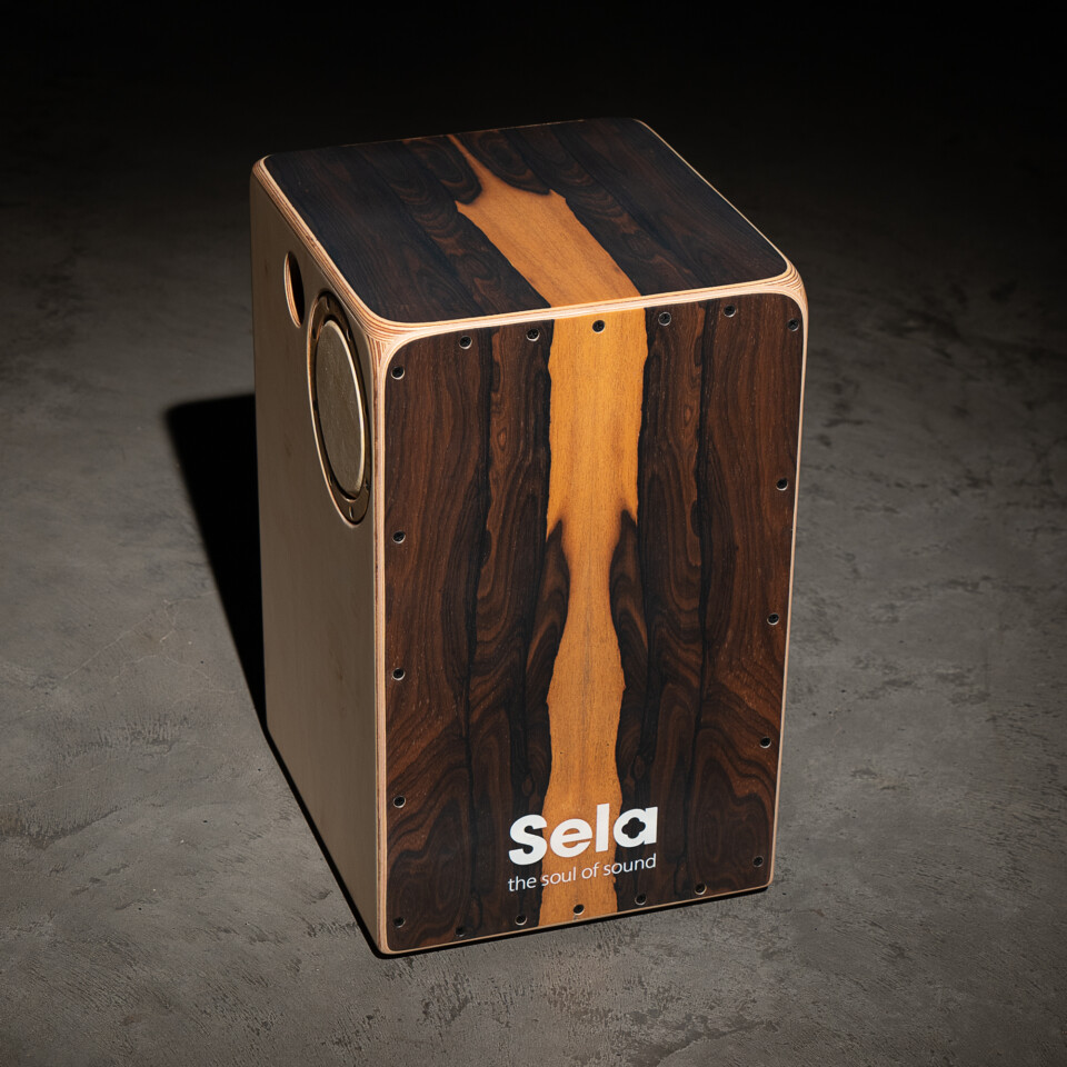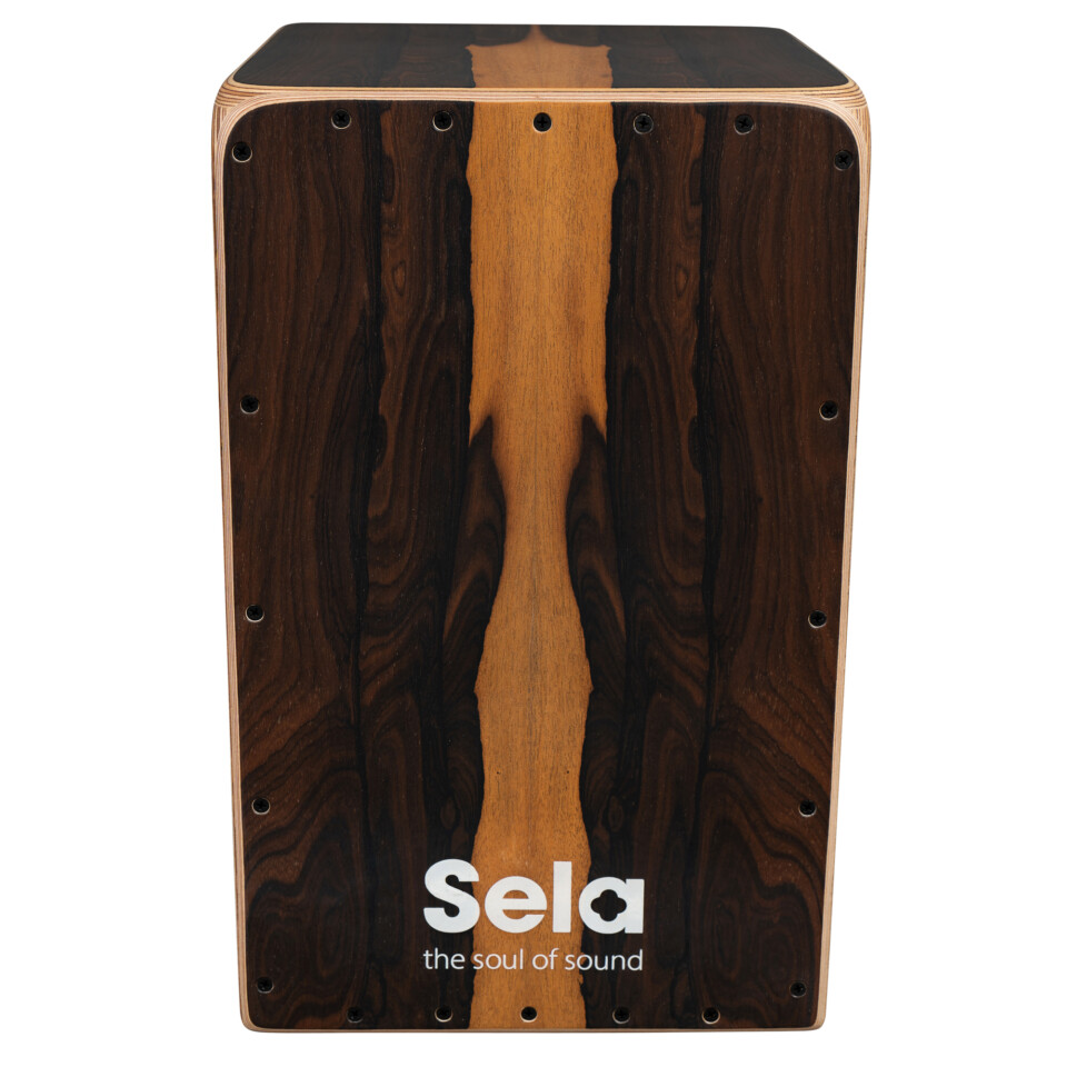 The Sela Iconic Cajon with Ziricote playing surface is a real game changer for percussionists as it combines three instruments in a single Cajon. The interchangeable drum heads, known as íons, are located on the side walls of these innovative cajons. Each íon has its own percussion sound. The Cajon is supplied with Cuban íon and Turkish íon as standard. Three further variants are optionally available: Guinean íon, Kenyan íon and Peruvian íon.