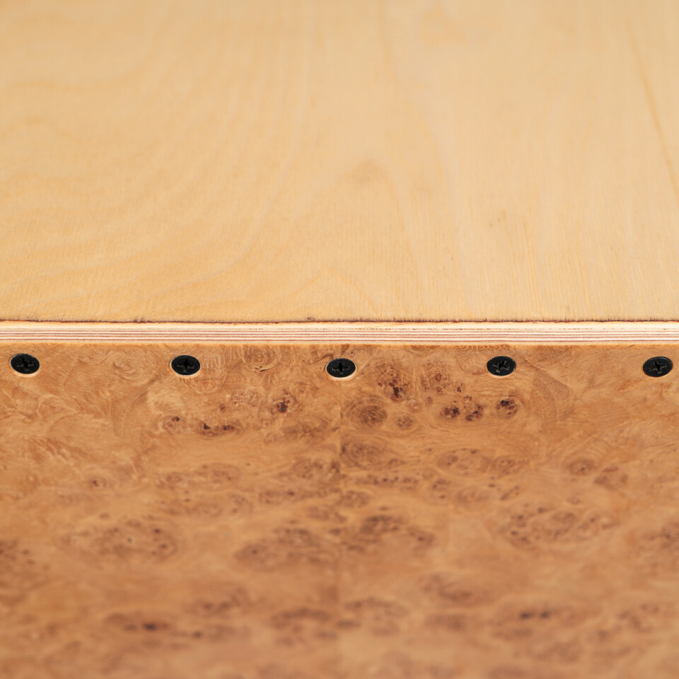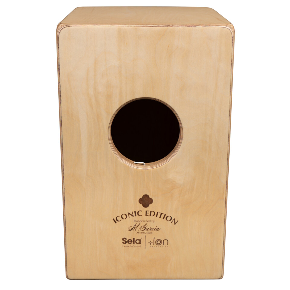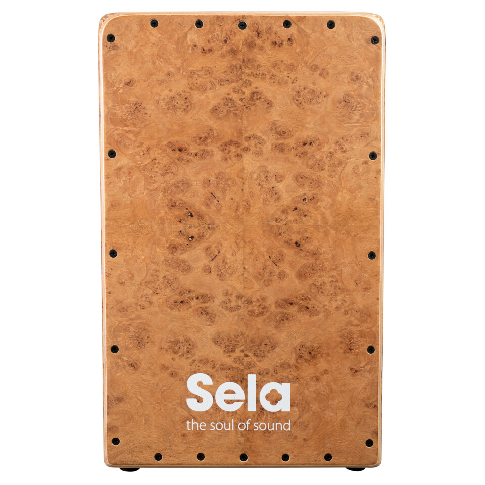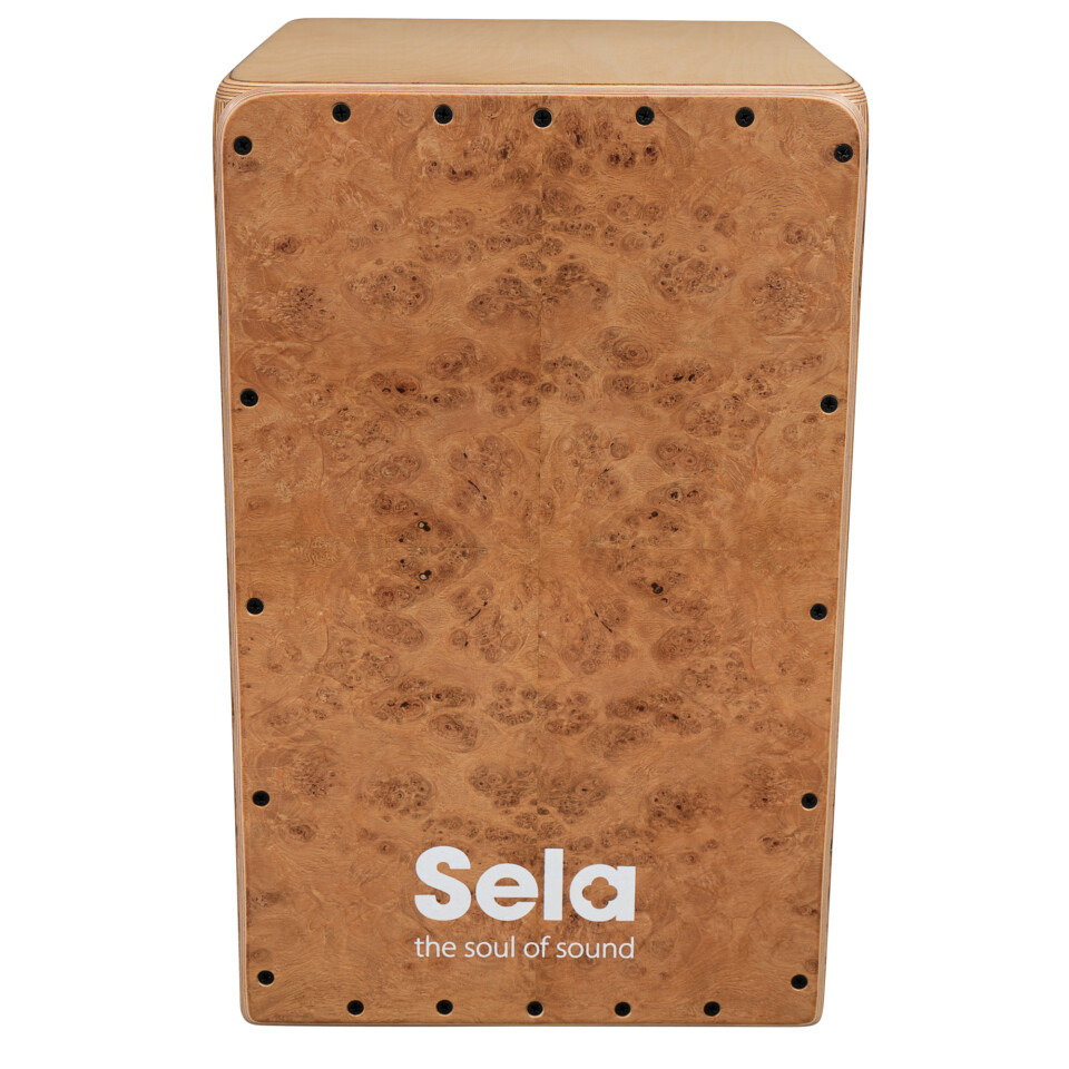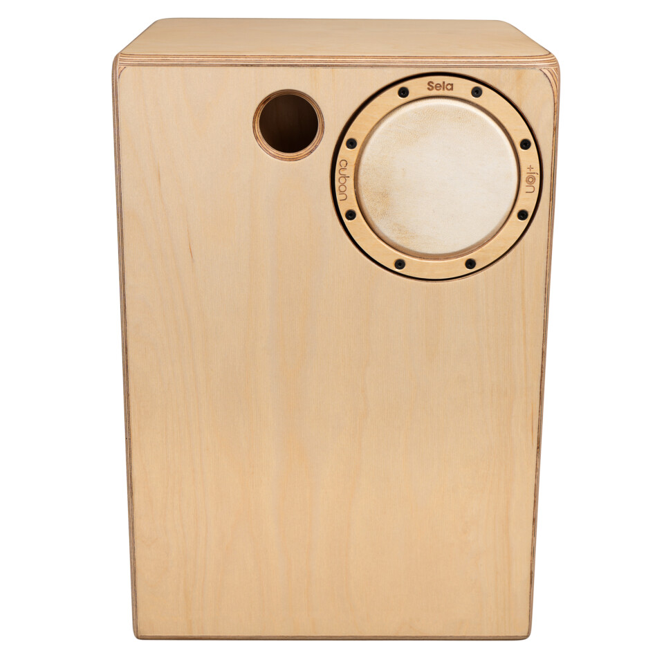 The Sela Iconic Cajon with Oak Roots playing surface is a real game changer for percussionists as it combines three instruments in a single Cajon. The interchangeable drum heads, known as íons, are located on the side walls of these innovative cajons. Each íon has its own percussion sound. The Cajon is supplied with Cuban íon and Turkish íon as standard. Three further variants are optionally available: Guinean íon, Kenyan íon and Peruvian íon.