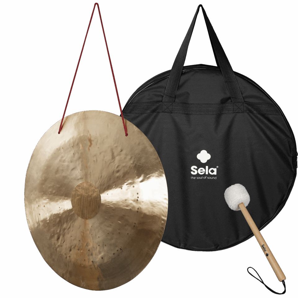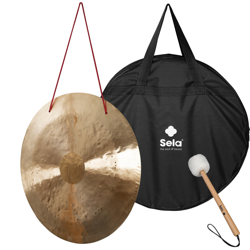 The Sela Wind Gongs are real masterpieces, handmade in China from a special bronze alloy. They are available in sizes 20, 24, 28, 32 and 36 inches. The larger the model, the deeper and also more voluminous the sound when struck. The scope of delivery of each model includes a mallet made of maple with a plastic head with velvet cover and a carrying bag with zip.