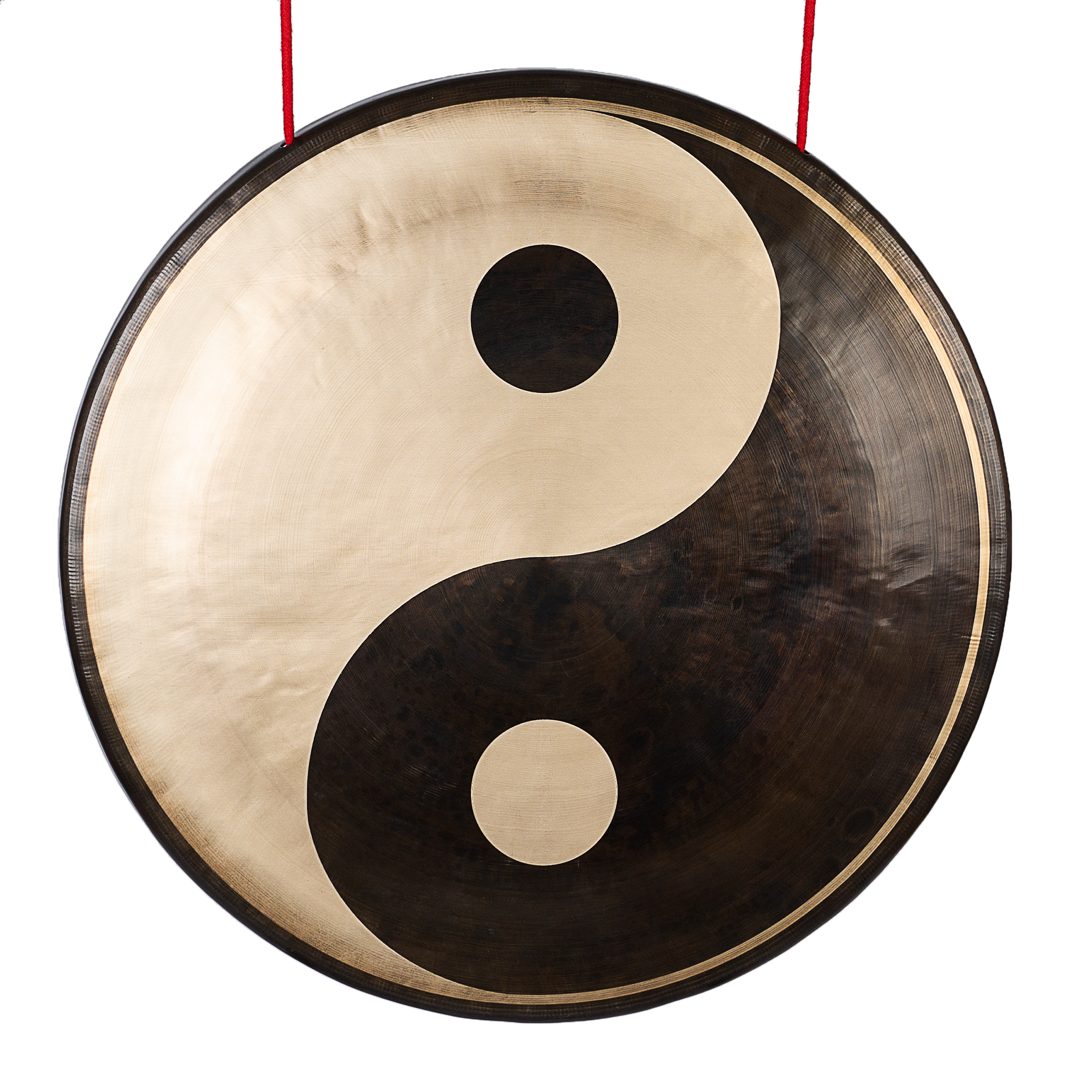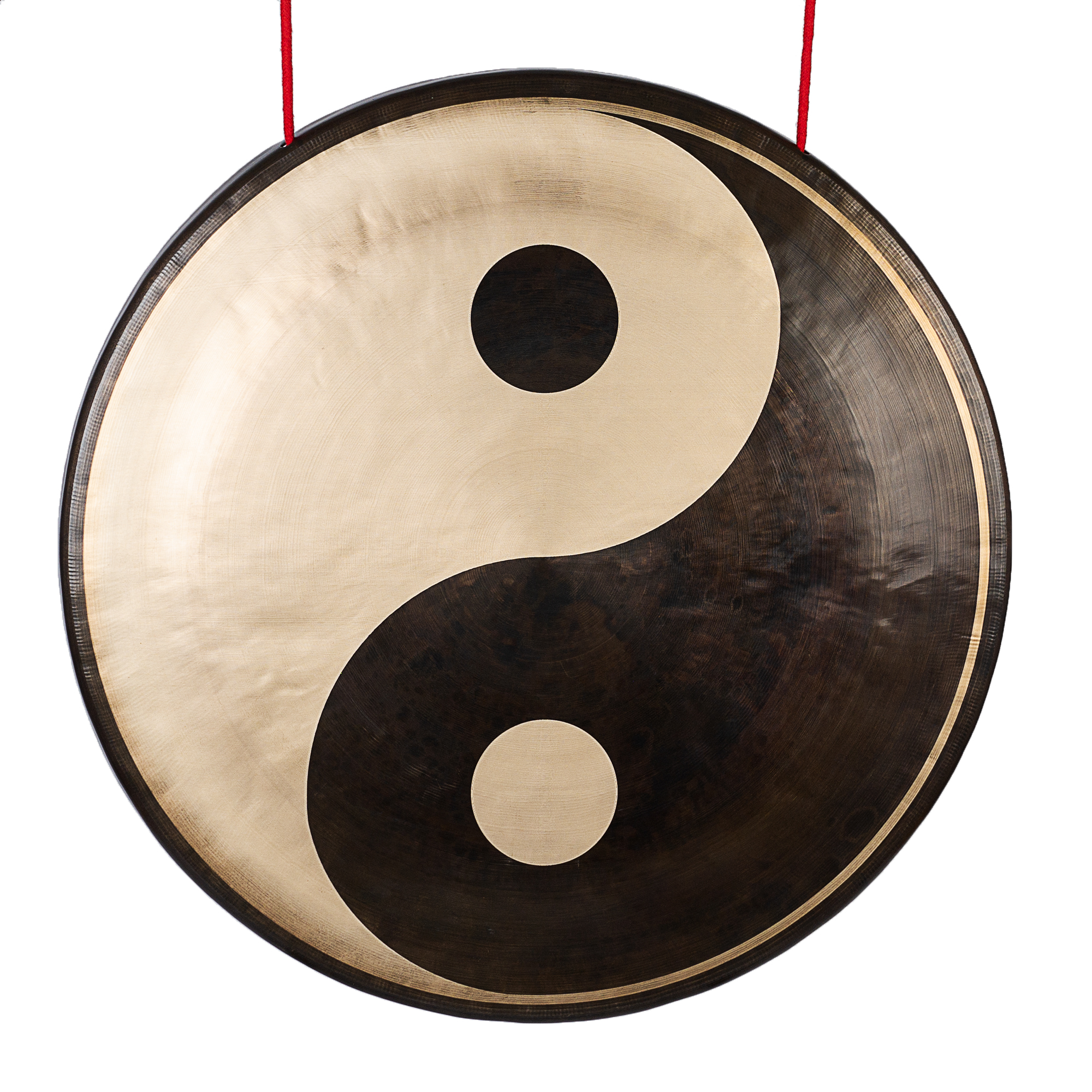 The Yin–Yang design features a polished metal surface with contrasting light and dark areas defining the symbol. Fine circular surface textures radiate outward from the center, creating visual depth and subtle variations. These differences influence the response and overtone distribution, while the central Yin–Yang motif forms the visual focal point and emphasizes balance between tonal stability and harmonic movement.