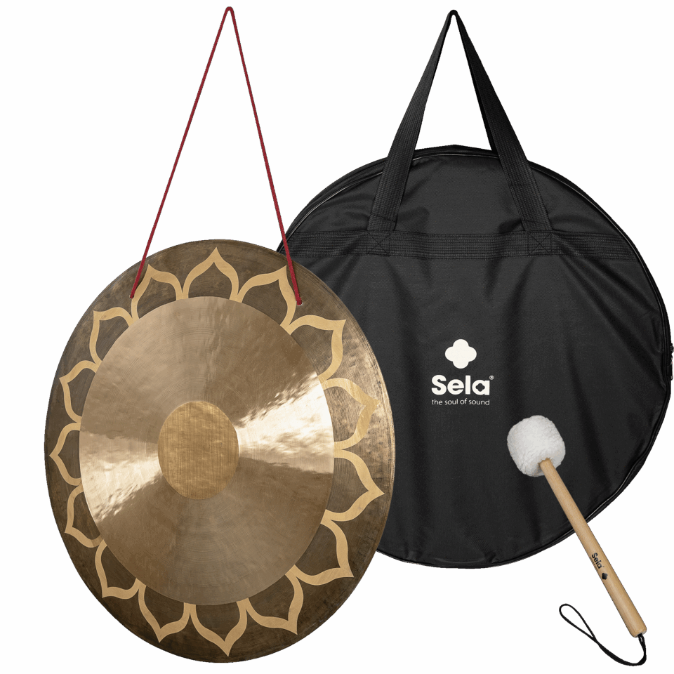The Sela Wind Gongs are real masterpieces, handmade in China from a special bronze alloy. They are available in sizes 20, 24, 28, 32 and 36 inches. The larger the model, the deeper and also more voluminous the sound when struck. The scope of delivery of each model includes a mallet made of maple with a plastic head with velvet cover and a carrying bag with zip.