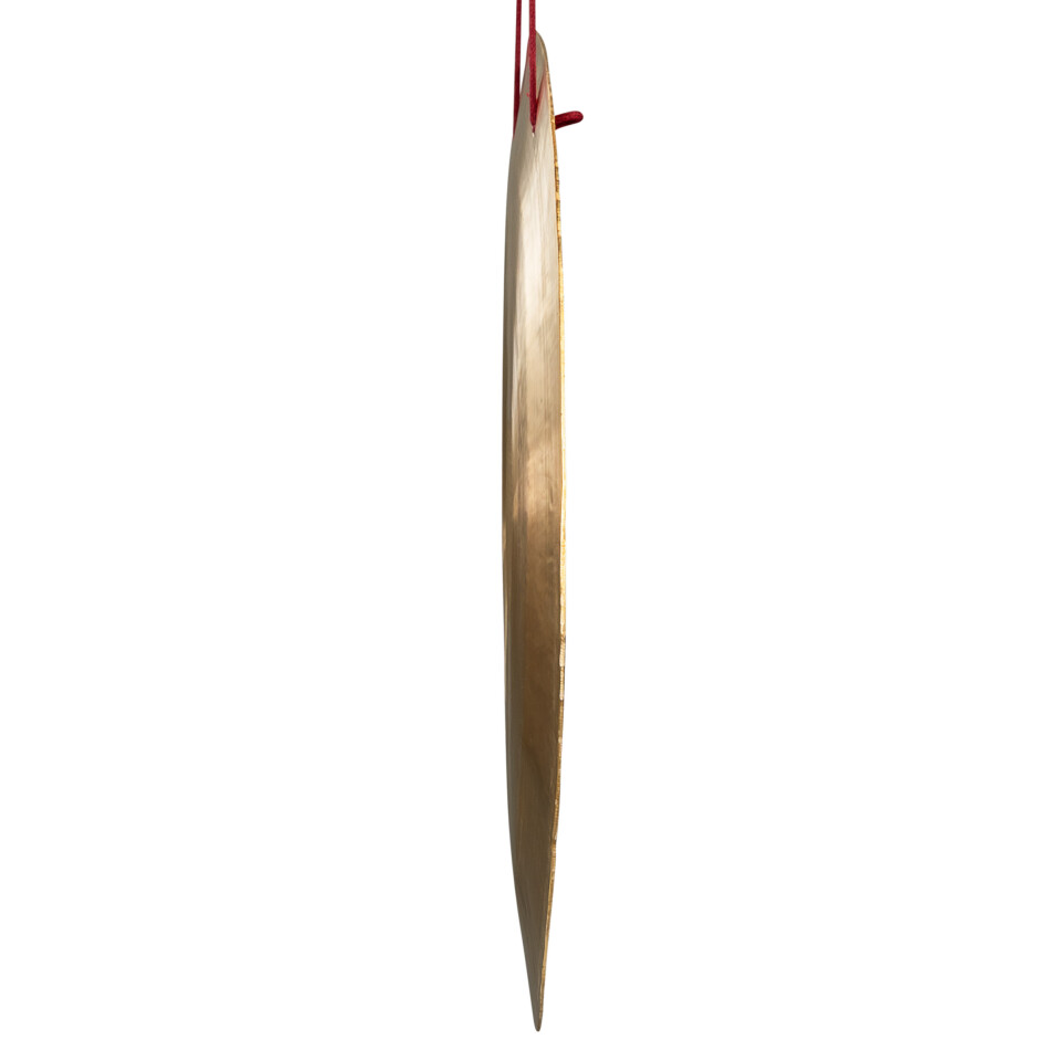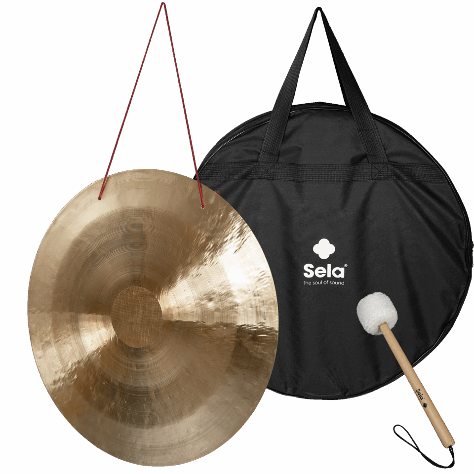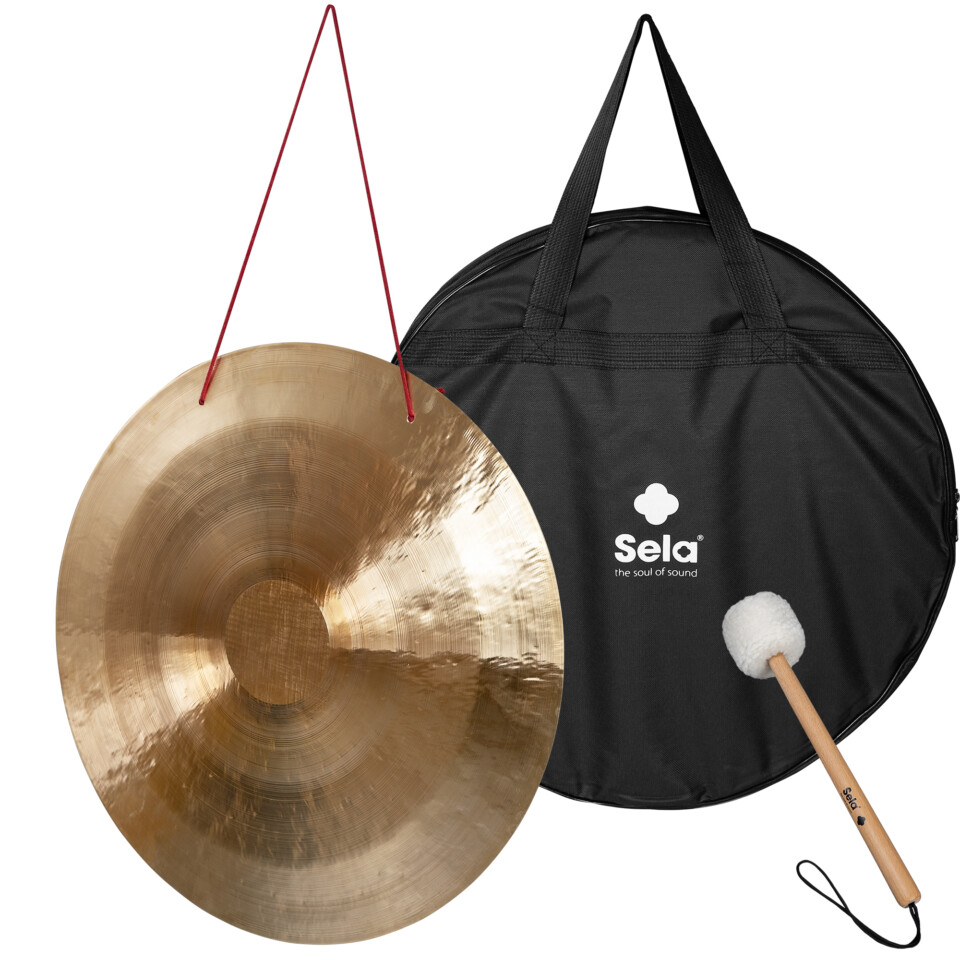 The Sela Wind Gongs are real masterpieces, handmade in China from a special bronze alloy. They are available in sizes 20, 24, 28, 32 and 36 inches. The larger the model, the deeper and also more voluminous the sound when struck. The scope of delivery of each model includes a mallet made of maple with a plastic head with velvet cover and a carrying bag with zip.
