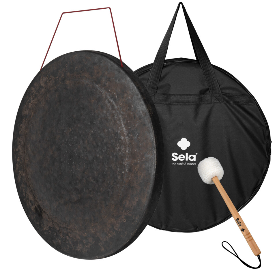 The Sela Chau gongs are genuine masterpieces that are made by hand in China from a special bronze alloy. Chau gongs have a traditional shape with a rim bent backwards and are available in sizes of 20, 24, 28, 32, 36, 40, 44 and 48 inches. The larger the diameter, the deeper and more voluminous the sound when struck. Each model comes with a beech mallet with a fleece-covered head and a practical zippered carrying bag.