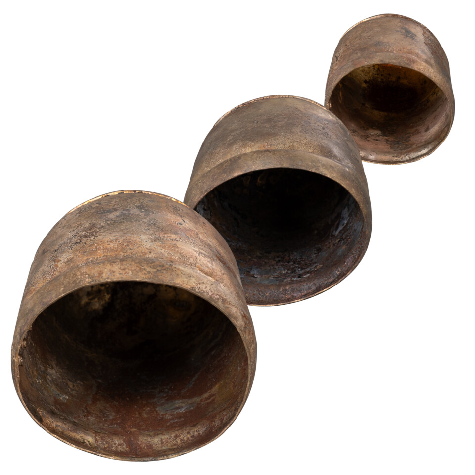The bells are formed by skilled artisans from sheets of iron and coated with molten brass. Each bell undergoes a deliberate aging process on its outer surface. This process creates a unique look that reflects the passing of time. Beyond its physical form, the Noah Bell is a timeless symbol that connects people to India’s rich cultural heritage and offers a deep connection to history and spirituality.