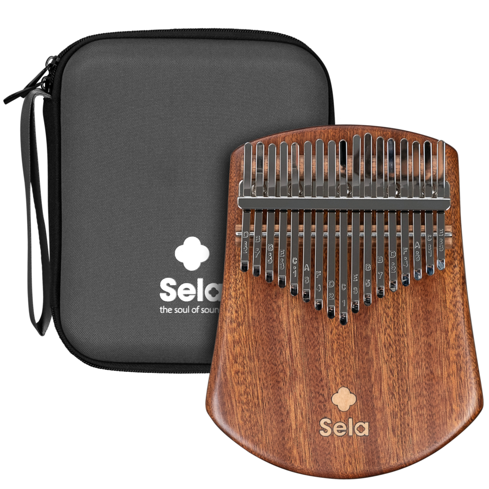 The Sela Kalimba 17 Sapele has a solid body made of sapele wood. The medium brown coloring and tight grain of this exotic wood species from Africa are reminiscent of mahogany – and the tonal characteristics are also excellent. Sapele produces a clear and bright tone without sacrificing warmth in the bass and midrange.