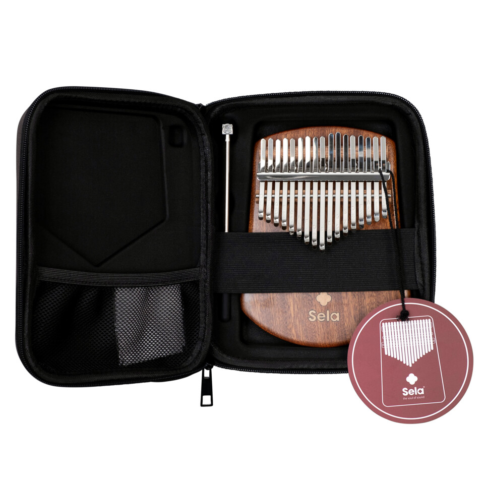 Included with the Sela Kalimba 17 Sapele is a high-quality case with carrying strap and fitted padding that effectively protects the instrument from damage during storage and transport. Also included is a microfiber cloth for cleaning the Kalimba and a tuning hammer. The latter is needed if you want to retune the instrument. A tip: To check the pitch, you can either use a smartphone with a corresponding tuning app or a small clip-on tuner for guitars.