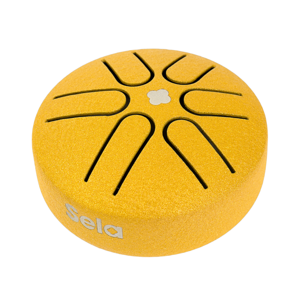 The SELA Melody Mini Tongue Drum 3″ is a handy steel tongue drum and, with a diameter of just 7.5 centimeters, the smallest model in our range. With clear pitch definition and a reliable response to light playing, this compact instrument is suitable for travelling musicians, beginners, and educational use..